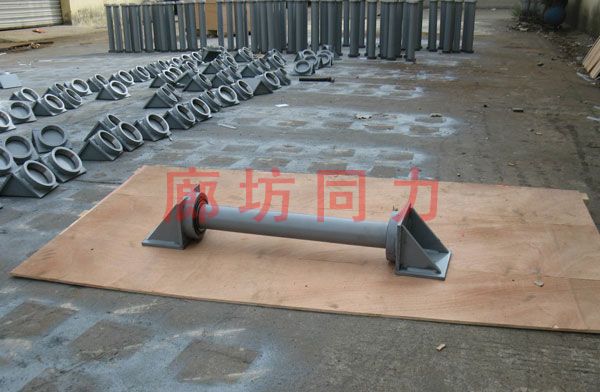 滾動支座主要由滾動體、單列圓錐滾子軸承、心軸、支承架等部件組成,工作原理是利用單列圓錐子軸承的滾動來減少熱力管道軸向移動的摩擦阻力,摩擦系數<0.04。它的主要特點是將老式的滑動摩擦改為滾動摩擦,從而大大降低了管道對固定支架的水平推力,能夠承受管道徑向位移所產生的徑向力。