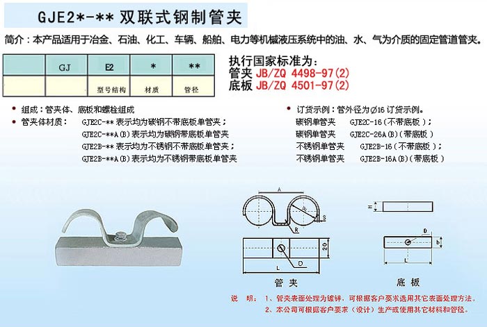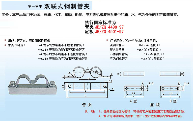 產品特點:雙管夾結構簡單,安裝簡便快捷,是管道施工的優良產品。