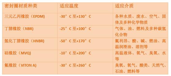 橡膠材質(zhì):三元乙丙橡膠、硅膠、氟膠、丁腈橡膠等。