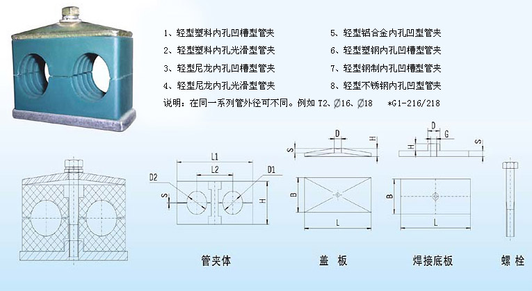 管夾體:PP/PA/AL /Q235/SS304/XS316